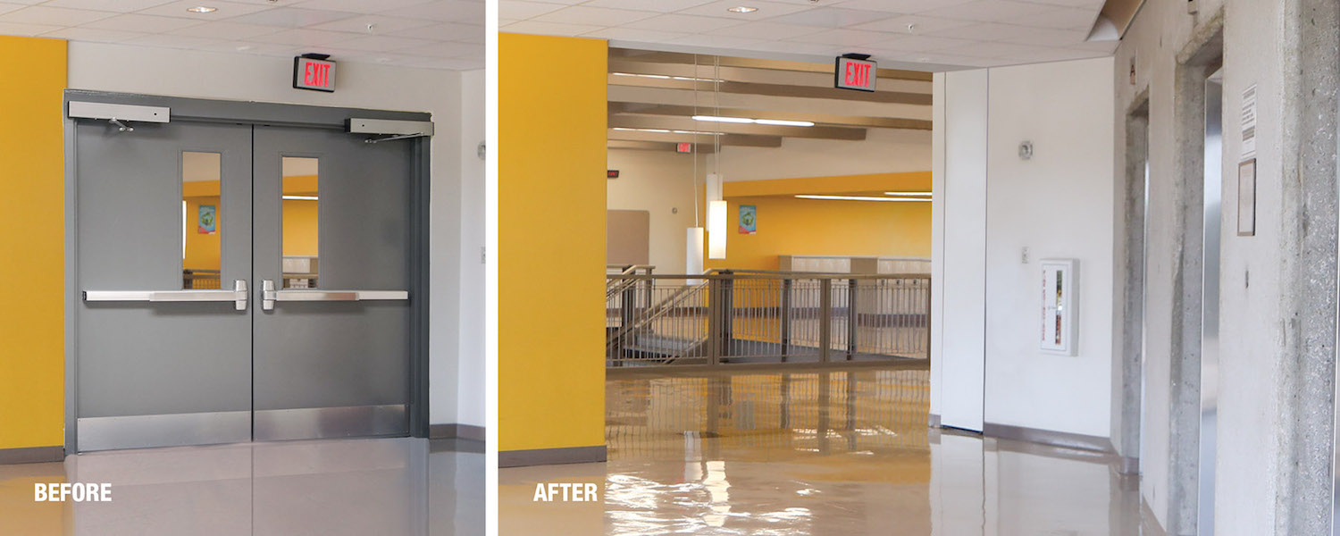 Designed as a true alternative to traditional swing doors, FireGuard Slim delivers a clean, minimalist aesthetic that aligns with modern interiors. Its compact head track and industry-leading 14″ stack depth help improve daylighting and maintain open, airy views while still meeting stringent life-safety requirements. Available up to 9 feet wide and in 7- or 8-foot heights, Slim fits common corridor and opening sizes in education, healthcare, office, hospitality and mixed-use projects.